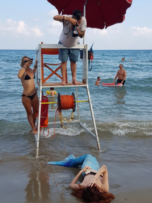 Protagonista del servizio fotografico è stata la modella Virginia Sicardi che, vestiti i panni della sirena, ha posato sulla battigia, tra gli sguardi incuriositi ed incantati dei turisti e degli appassionati di fotografia.