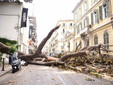 Sanremo: caduta della magnolia in via Roma, la strada non riaprirà prima di domattina. 3 mezzi distrutti (Foto e Video)
