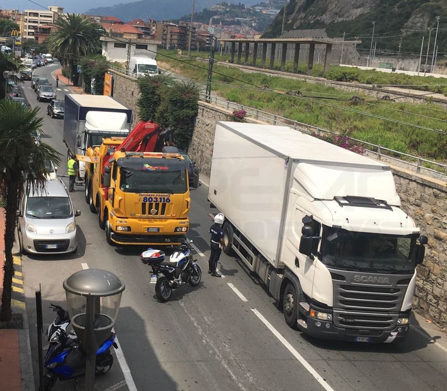 Sul posto sono prontamente intervenuti gli agenti della Polizia Municipale di Ventimiglia, che stanno regolando il traffico nella zona. Ora si sta attendendo un rimorchio che possa spostare il camion e consentire il ripristino del traffico.