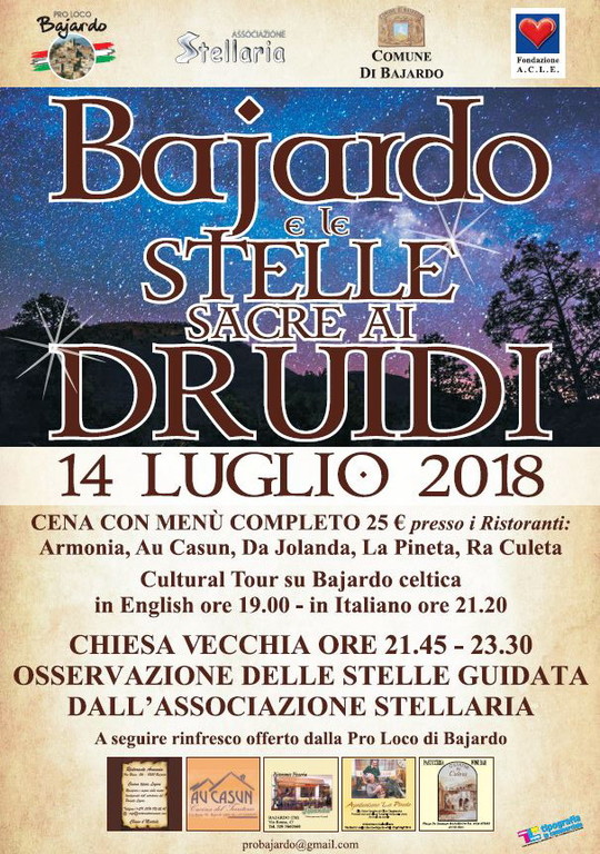 Sabato prossimo, 14 luglio, appuntamento a Bajardo con e le Stelle Sacre ai Druidi.