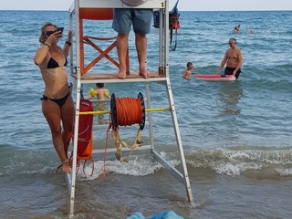 Una Sirena incanta i turisti alassini. Dopo l’inaugurazione della sua mostra personale di sabato scorso, alla galleria ‘Artender’ di Alessandro Scarpati e che ha visto una grande partecipazione di appassionati, il fotografo imperiese Riccardo Bandiera ha svolto ieri pomeriggio uno shooting fotografico in riva al mare davanti ai Bagni Lena, a pochi metri dalla mostra fotografica in passeggiata Cadorna 53 ad Alassio.