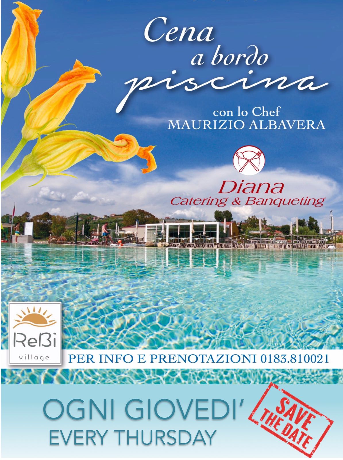 Sotto le stelle a bordo piscina lo Chef Maurizio Albavera di Diana Catering ha ideato una romantica cena caratterizzata da un menù gastronomico studiato per deliziare. Protagonista della serata sarà la buona cucina ligure tra tradizione ed innovazione.