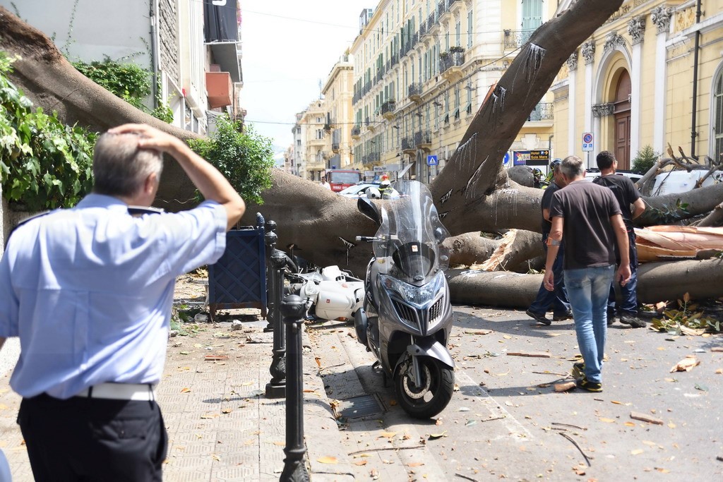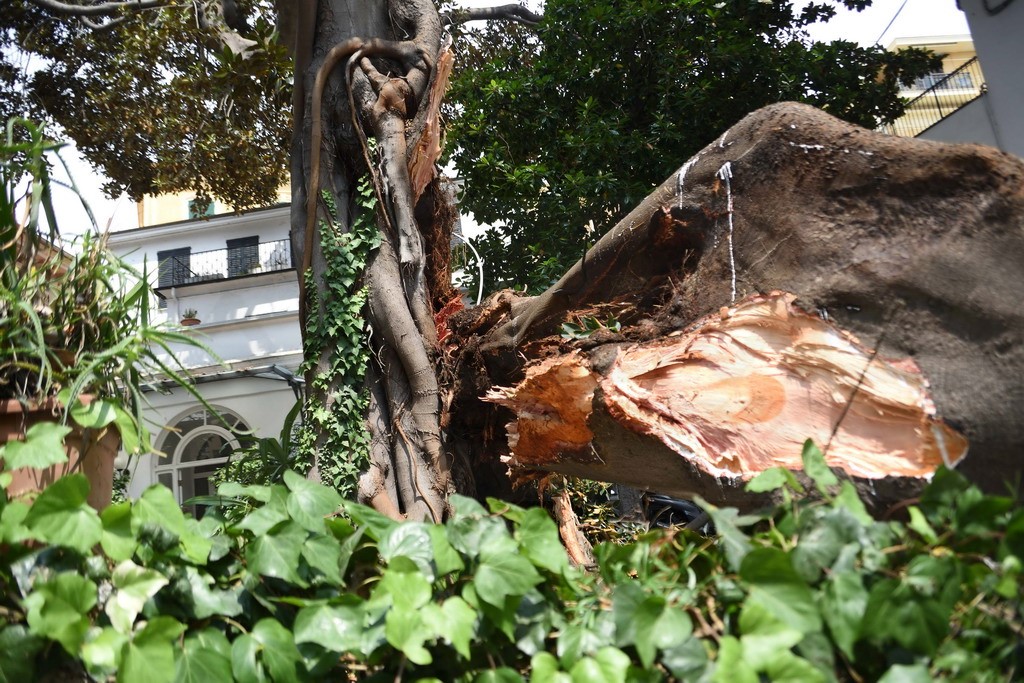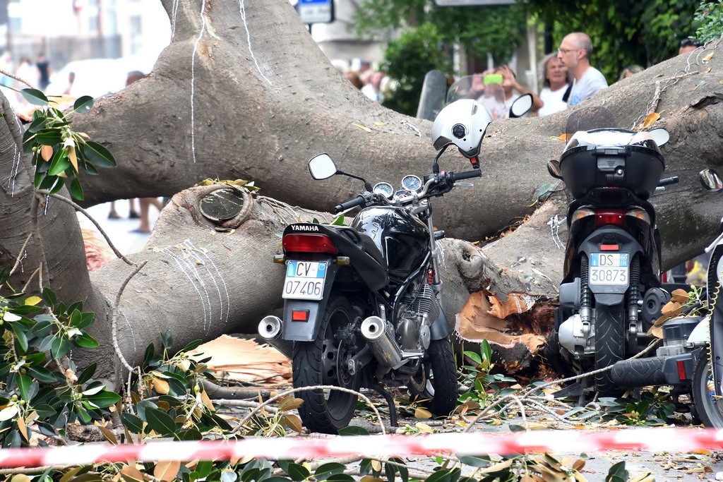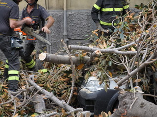 Alle 12.30 è arrivata la conferma che, fortunatamente, non ci sono persone sotto l'albero caduto. I danni, quindi, sono limitati ai mezzi schiacciati dal pesante arbusto.