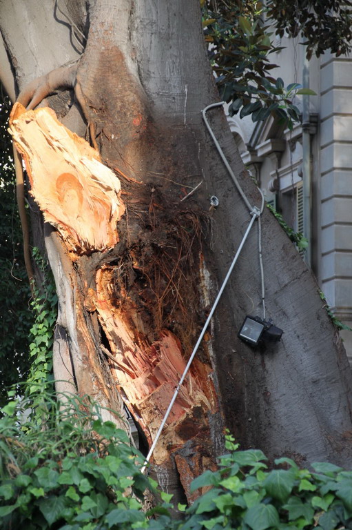 Verrà controllato quanto è rimasto dell’albero secolare, che ieri si è spezzato. Gli agronomi del Comune, approfitteranno del sopralluogo, per analizzare la situazione dell’altro enorme albero che si trova a fianco di quello spezzato, sempre nel giardino dell’hotel. E' stato confermato che, quanto rimasto dell'albero spezzatosi ieri, verrà completamente rimosso, ma verrà anche 'sfrondata' la seconda pianta rimasta. In particolare i rami che insistono sulla pubblica via.
