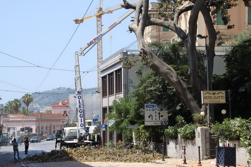 Intanto è confermato che via Roma non riaprirà prima di domani mattina perché, per tutta la giornata odierna proseguiranno i lavori per rimuovere la pianta che ha visto staccarsi ieri l’enorme ramo ma, soprattutto, è stato deciso di tagliare e rimuovere anche l’altro Ficus presente nel giardino dell’hotel, perché a rischio caduta. Al momento non è facile prevedere la tempistica dei lavori ma, quasi certamente, la strada non riaprirà prima di domattina anche perché successivamente servirà pure la bonifica completa dell’asfalto.