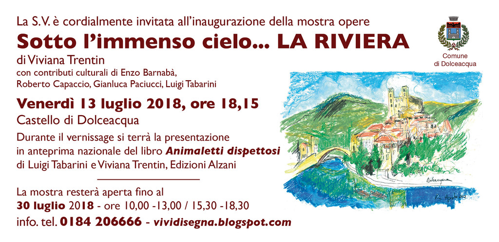 Domani, venerdì 13 luglio, alle ore 18.15, con il patrocinio comunale e alla presenza di S.E. Mons. Antonio Suetta Vescovo di Ventimiglia-Sanremo, sarà inaugurata al Castello di Dolceacqua la mostra ‘Sotto l’immenso cielo…la Riviera’