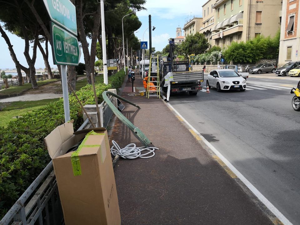 Imperia: partiti i lavori per il ripristino del semaforo di viale Matteotti. La riattivazione è prevista per oggi