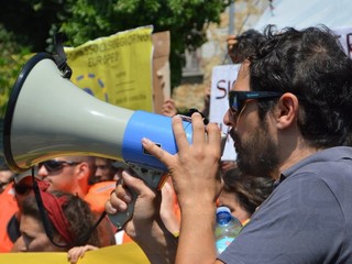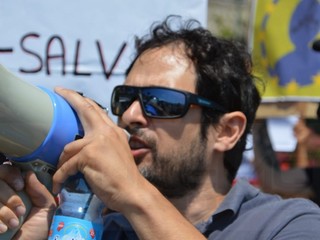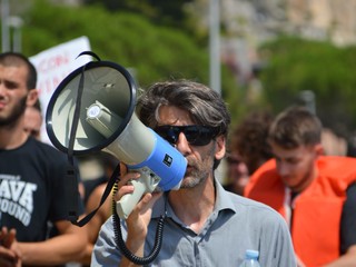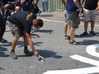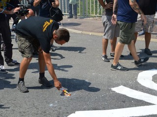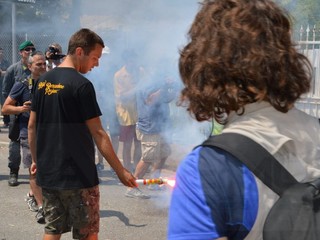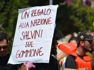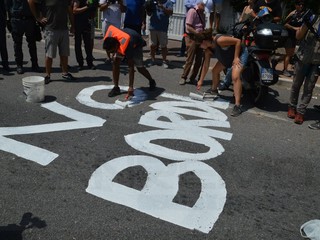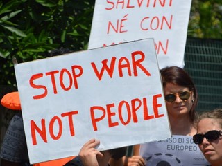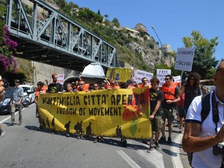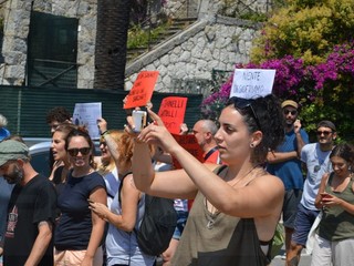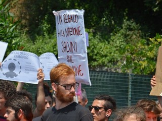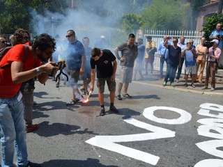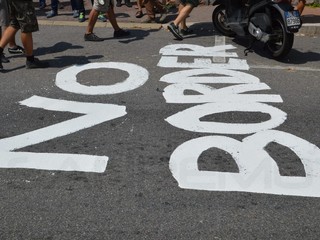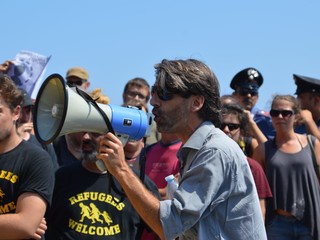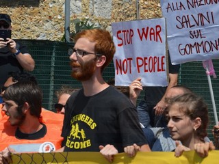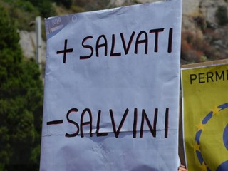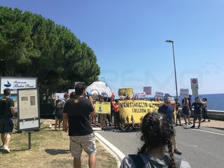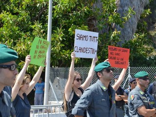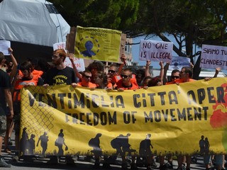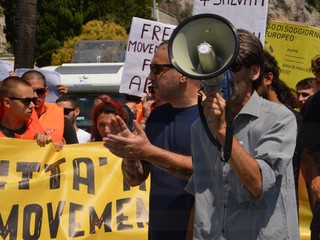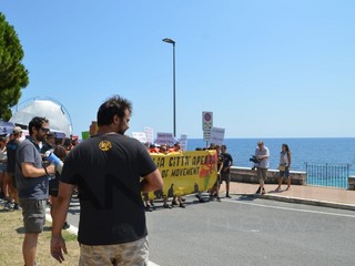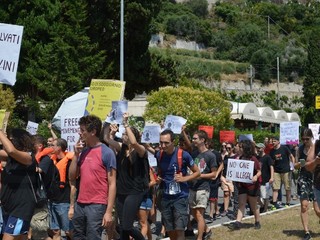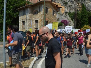 E' da poco iniziata la manifestazione di 'Border crossing' organizzata dall'associazione 'Progetto 20k', preludio di quella di domani a Ventimiglia. Con i classici slogan e con dure invettive contro i governi italiano e francese, un centinaio di manifestanti stanno urlando la loro rabbia di fronte ad una tenda, messa di fronte al confine, quale povero simbolo dei migranti.