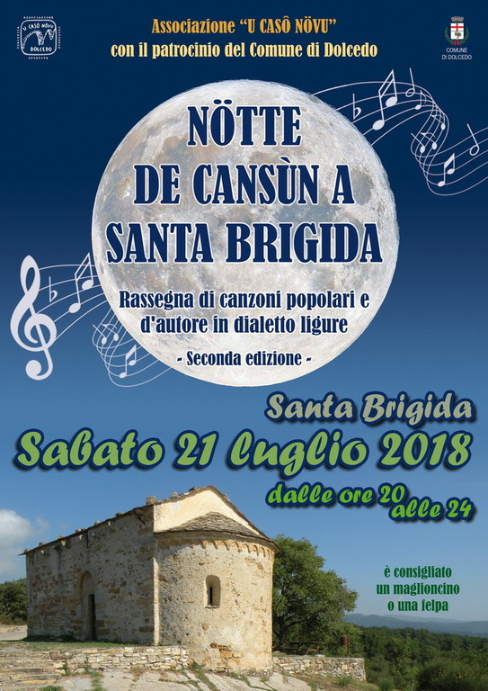 Dopo il grande successo della prima edizione, l’Associazione 'U Casô Növu' organizza sabato 21 luglio 2018 dalle ore 18 la rassegna 'Notte di Casùn' in località 'Santa Brigida' (quattrocentesca cappella che si trova lungo la strada Dolcedo/Monte Faudo e dista 6 chilometri da Dolcedo e 5 da Civezza).