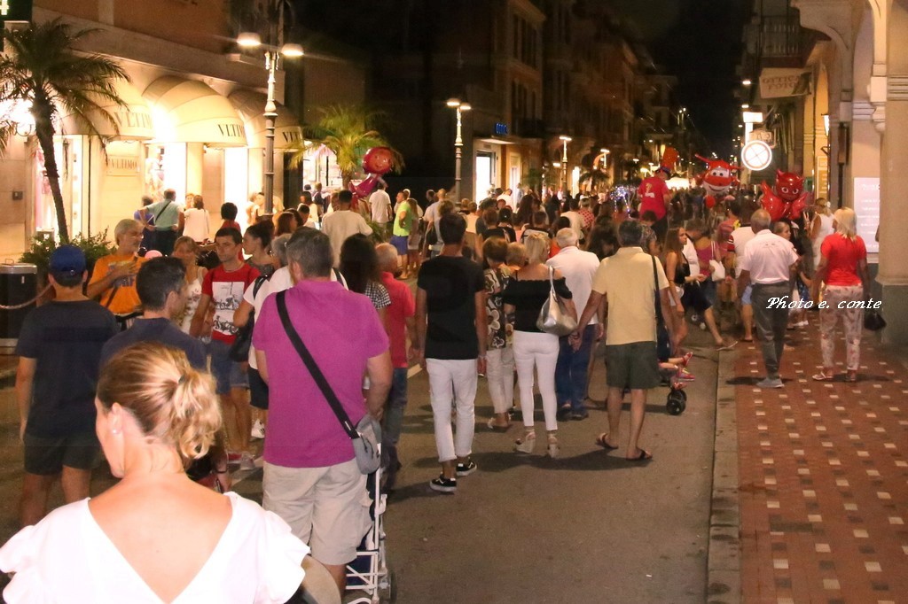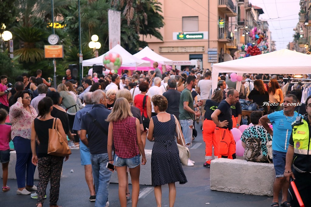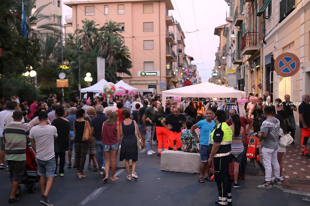 Grande successo di partecipazione e gradimento, ieri sera a Bordighera per la 'Notte è Rosa’ l’evento, unico nel suo genere in provincia, organizzato dalla Confcommercio in collaborazione con il Comune, durante il quale la città è stata chiusa al traffico veicolare per trasformarsi in una gigante isola pedonale allestita all’insegna del divertimento.