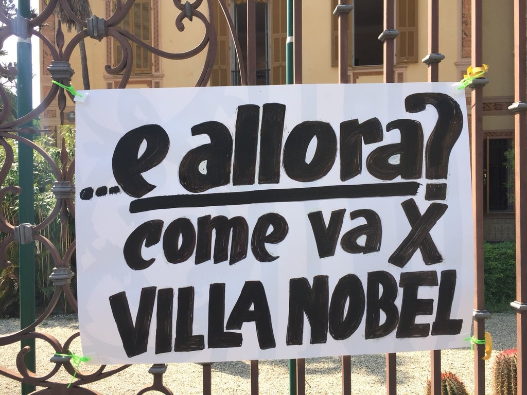Questa mattina, come se non bastasse, dal lato di corso Cavallotti sono apparsi gli ormai consueti cartelli che incitano la Provincia e il Presidente Fabio Natta ad attivarsi per la Villa. Ma, in effetti, qualcosa è stato fatto. Stando a quanto emerge dalla Provincia la gestione di Villa Nobel sarebbe stata affidata a un’azienda milanese che avrebbe avuto la meglio su una seconda concorrente che aveva inviato la proposta.
