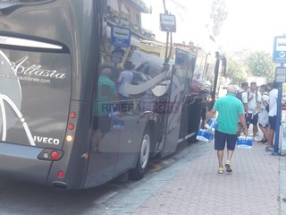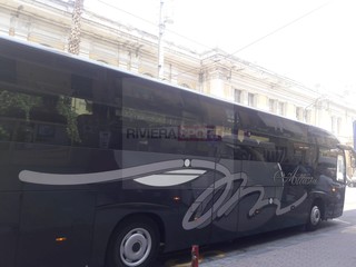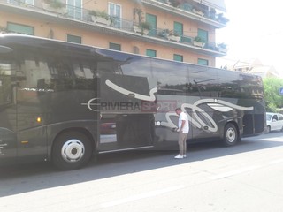 La Sanremese è partita alle ore 13.30 circa dallo stadio "Comunale" di Sanremo per la lunga trasferta di San Benedetto del Tronto, dove domenica nel tardo pomeriggio alle ore 18.30 i ragazzi di mister Alessandro Lupo scenderanno in campo per affrontare la Sambenedettese nel primo turno della Coppa Italia Tim al "Riviera delle Palme". Allo stadio, poco prima della partenza, c'eravamo anche noi di rivierasport.it: di seguito potrete vedere un'ampia galleria di scatti e qualche video dei giocatori matuziani.