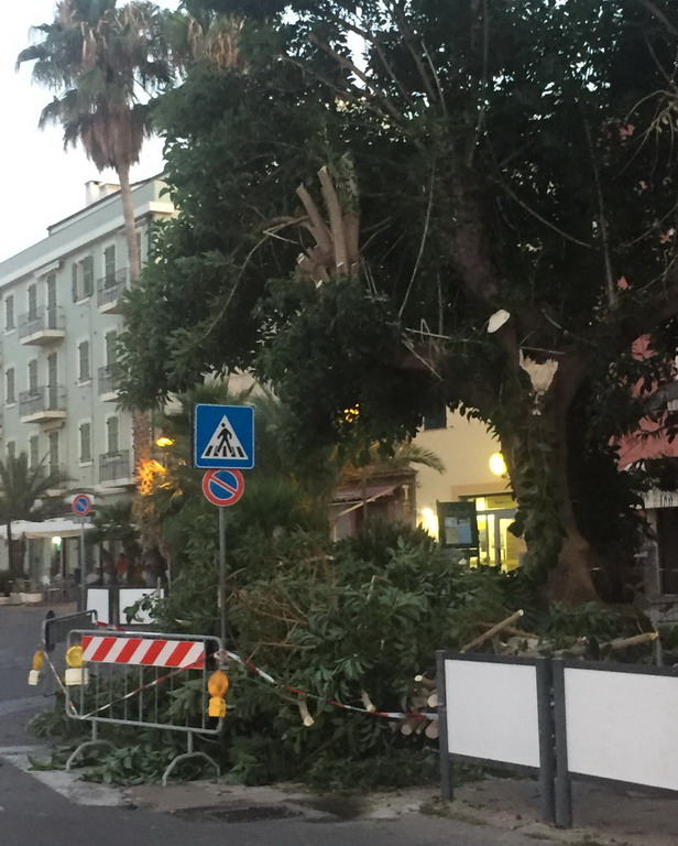 Santo Stefano al Mare: ramo di fitolacca crolla in pieno centro, il sindaco Di Placido "Per fortuna nessun danno fisico, poteva succedere di tutto" (Foto)