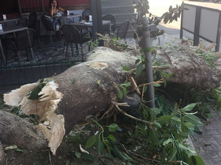 Tanta paura ieri sera a Santo Stefano al Mare, in piazza Aurelio Saffi, per l'improvviso crollo di un grosso ramo di fitolacca che ha toccato in parte il dehor del bar Caravella, pieno di gente in una tipica serata estiva.