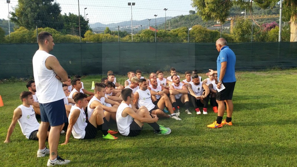 Le prime parole di Buttu e Sassu. Tanti i volti nuovi (molti tra i quali prova), ma a spiccare sono state le presenze di Costantini (nella scorsa stagione alla Sanremese) e dei veterani del gruppo come capitan Ambrosini, Giglio, Laera e bomber Castagna. I primi a parlare sono proprio l'ex tecnico del Finale ("non nascondo un po' di emozione") e il Direttore Sportivo Salvatore Sassu che traccia il bilancio sul mercato nerazzurro ("stiamo facendo bene. Janjus? Non rispondo...")