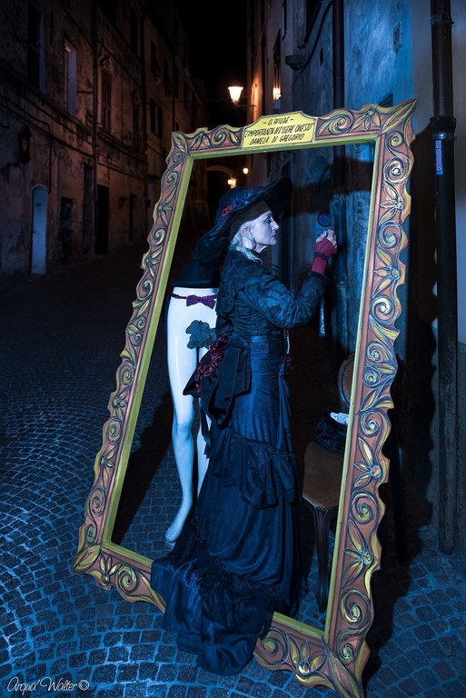 Il pubblico suddiviso a gruppi potrà' assistere ad un vero e proprio percorso d'arte; una serie di grandi monologhi tratti da opere teatrali di tutti i tempi, presentati proprio come una vera galleria di quadri d'autore, da cui i protagonisti affiorano e si rianimano per un breve momento, attraversando la "tela". Tutto in ricordo di Tommaso Arnaldi, promotore della manifestazione. Ed ecco i protagonisti: Loredana De Flaviis, Franco La Sacra, Paolo Paolino, Consuelo Benedetti, Daniela Di Gregorio, Marta Giuffra, Dalia Lottero, Enrico Manfredini, Graziella Tufo, Anna Vigliarolo e con la precisazione di Lorenzo Lanteri alla fisarmonica e Gabriele Manfredini alla tastiera. Costumi, scenografia e regia di Carlo Senesi. Ingresso Libero