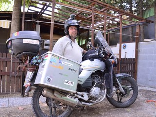 In sella alla sua Yamaha Ybr 125 sta facendo un tour in tutta Italia. Partenza da Budapest, avvenuta una settimana fa, e ritorno previsto nella città magiara dopo 7 mila chilometri, con una serie fittissima di tappe nel Belpaese. E' l'impresa solitaria di Hevesi Béni, 46enne ungherese, intrepido e inarrestabile viaggiatore su due ruote. In questi giorni il centauro ha fatto tappa in Liguria, raggiungendo il ponente dopo una capatina a Cannes.