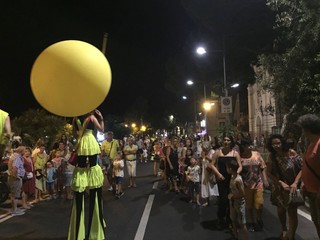 Bolle di sapone, musica, giochi con il fuoco. Dentro e fuori dal Borgo, i cinque artisti hanno fatto da apripista ad una parata di gente che gli ha accompagnati lungo tutto il tragitto.