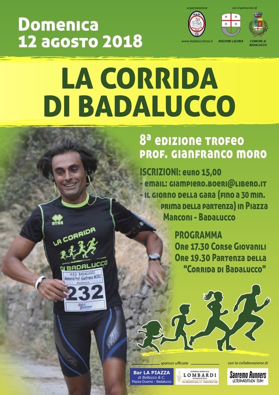 Si prepara a tornare la Corrida di Badalucco. Domenica 12 agosto sono attesi almeno 150 partecipanti alla linea di partenza per questa ottava edizione del Trofeo Prof.Gianfranco Moro.