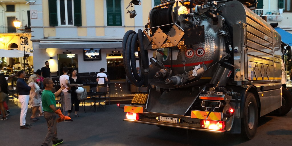Alle 20.30 il camion ha provveduto al primo spurgo ma, una volta in piazza Sardi, uno dei ristoratori si è opposto all’intervento. Altri hanno così chiamato la Polizia Municipale che ha obbligato lo spurgo per ragioni di sicurezza e igiene.