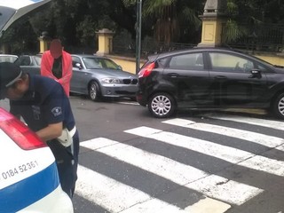 Sanremo: scontro auto-moto in corso Cavallotti, centauro lievemente ferito ed intervento della Municipale (Foto)