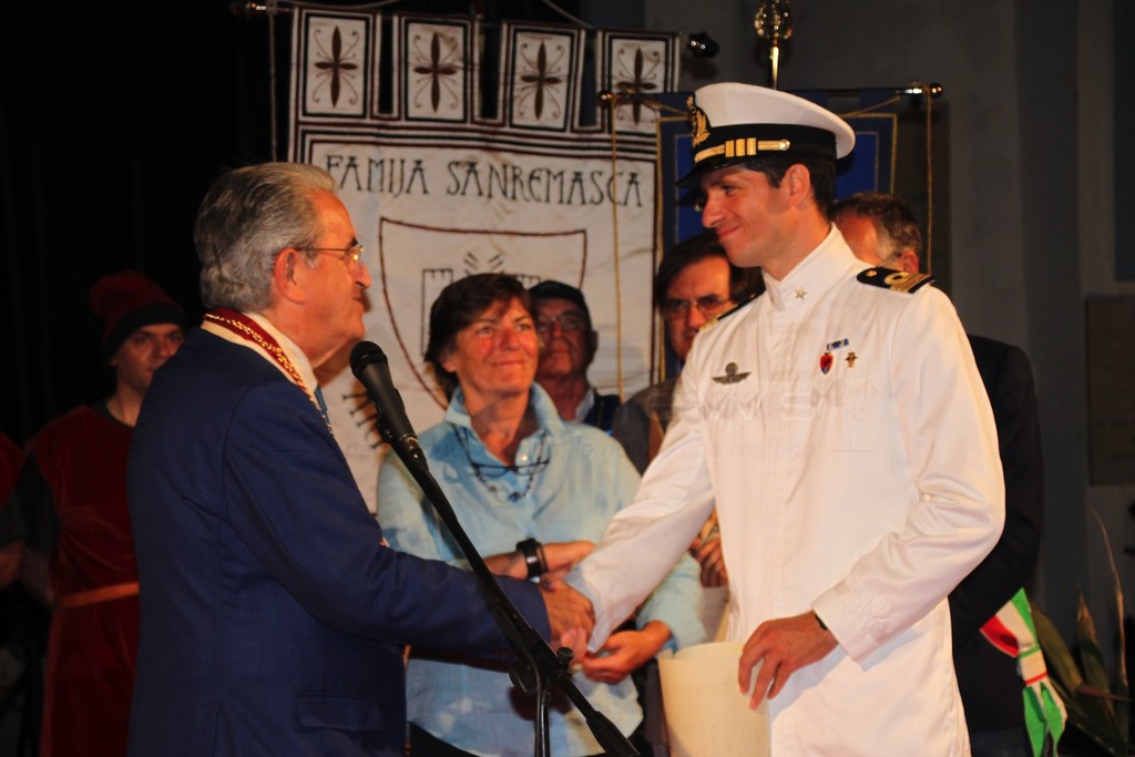 La Famija Sanremasca e le associazioni hanno nominato Giuseppe Bonelli (Capitano di Vascello, assente questa sera), Gina Zaoli (presidentessa del Circolo Velico di Capo Verde) e Vittorio De Paulis (Tenente di Vascello, Marina Militare).