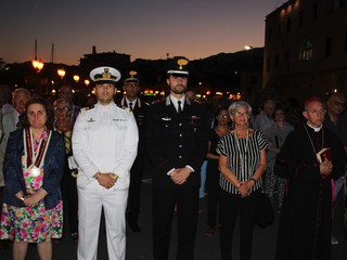 La banda ha poi intonato il “silenzio” in onore delle vittime di Genova per poi suonare l’Inno di Mameli alla nomina dei nuovi Consoli del Mare. La preghiera del marinaio e la deposizione delle due corone di fiori hanno chiuso una manifestazione in tono minore, come l’intera serata della vigilia di Ferragosto con gli eventi e i fuochi d’artificio annullati.