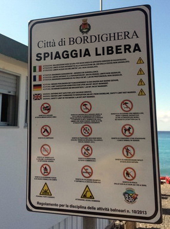 L’Amministrazione Comunale di Bordighera sta in questi giorni ultimando il rinnovamento della segnaletica delle spiagge: i vecchi cartelloni, ormai usurati dal tempo, stanno venendo rimossi per far posto alla nuova segnaletica.