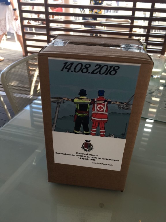"Inoltre, l'assessore Gianmarco Oneglio ha predisposto alcune cassette di beneficenza che verranno posizionate all'interno dell'attività commerciali che vorranno aderire per raccogliere fondi a favore dei parenti delle vittime e degli sfollati. Al momento sono trenta le attività che hanno dato la propria disponibilità. Chi vuole aderire può rivolgersi all'Ufficio Commercio del Comune di Imperia. Le prime 20 cassette verranno posizionate già domani".