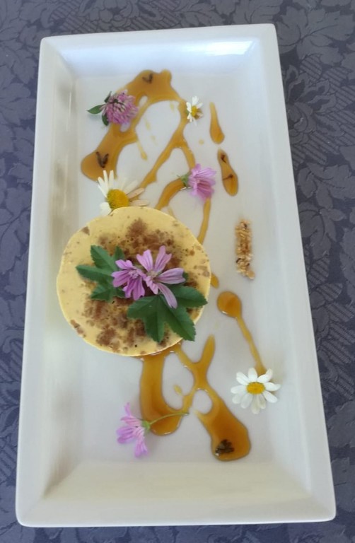 Ingredienti: per 10 porzioni: 1 lt. latte fresco, 8 uova fresche, 5 cucchiai di zucchero, 20 fiori di malva. Per il caramello: hg. 1 di zucchero e 1 dl di acqua e un cucchiaio di fiori di lavanda.