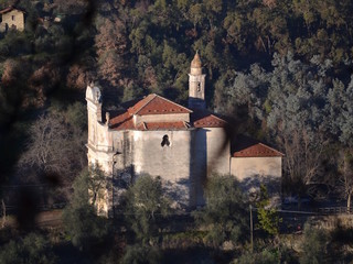 L'antica strada, una mulattiera, che dal mare valica le Alpi Liguri, trovava qui come prima stazione un santuario dedicato alla Vergine, costruito forse da Benedettini Spagnoli nel 1380. Dopo un miracolo confermato dal 1758, la chiesetta con un polittico del Quattrocento era ristrutturata successivamente 1770 fino 1819 come chiesa grande.
