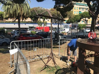 Sanremo: vandali in azione dalle “sedie giganti” di Santa Tecla, questa mattina i lavori per riparare il leggio spezzato (Foto)