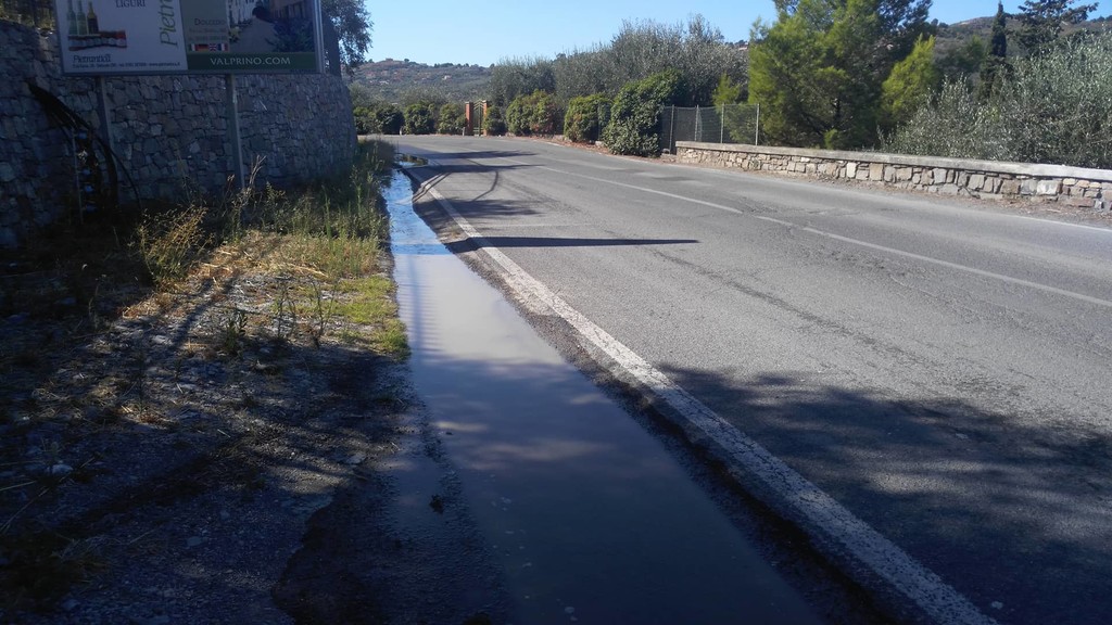 L’ennesimo guasto alla tubatura a Bastera, nella strada che collega Caramagna a Dolcedo, ha provocato un’importante fuoriuscita d’acqua che si estende per centinaia di metri, causando disagi alla circolazione.