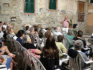 Nella bella e rinnovata piazza del Piano, nel centro storico di Bordighera alta, si è svolto ieri sera il secondo incontro della rassegna dedicata a libri, parole, arte, musica, storie e bellezza. Il giornalista Claudio Porchia ha introdotto e presentato Barbara Ronchi della Rocca ed i suoi ultimi libri "Il Galateo dei Fiori" e "Bollicine che passione!" pubblicati dalla casa editrice Zem di Vallecrosia.