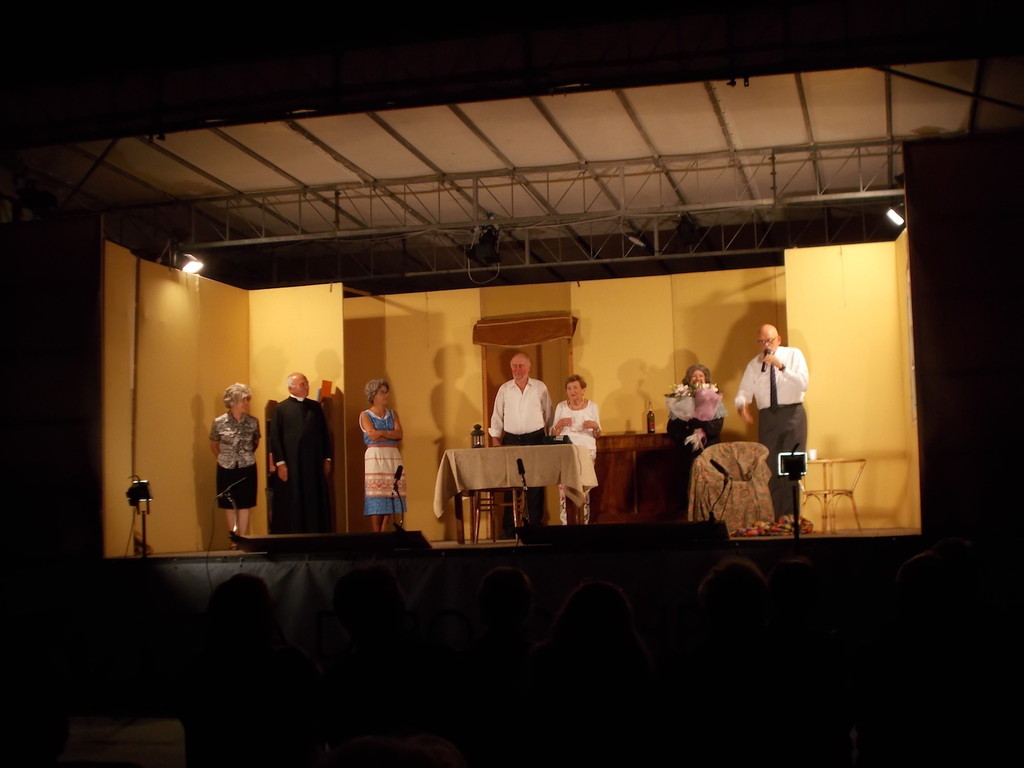 Protagonisti i brillanti attori della Cumpagnia d'u Teatru Ventemigliusu che hanno interpretato i due atti unici in dialetto ventimigliese “A çena d'a leva” di Emilio Azaretti e “U scangiamentu d'a scia Bregogliu” di Andrea Capano.