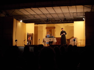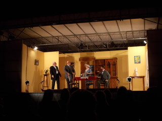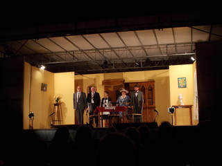 Protagonisti i brillanti attori della Cumpagnia d'u Teatru Ventemigliusu che hanno interpretato i due atti unici in dialetto ventimigliese “A çena d'a leva” di Emilio Azaretti e “U scangiamentu d'a scia Bregogliu” di Andrea Capano.