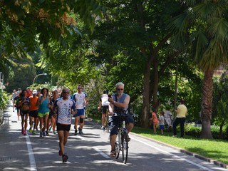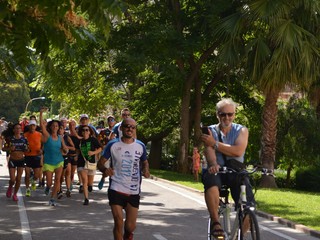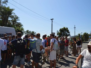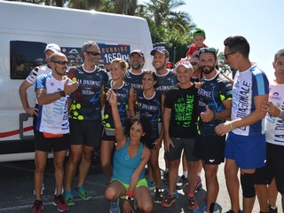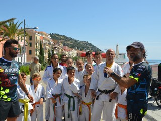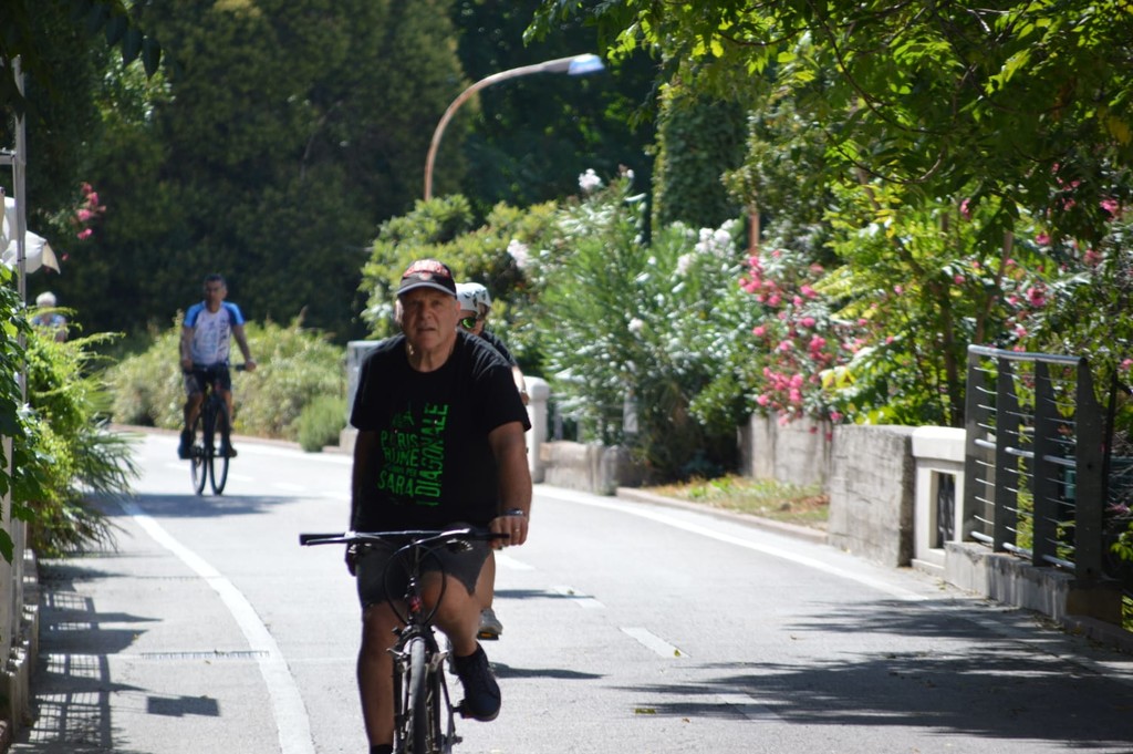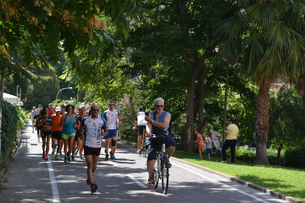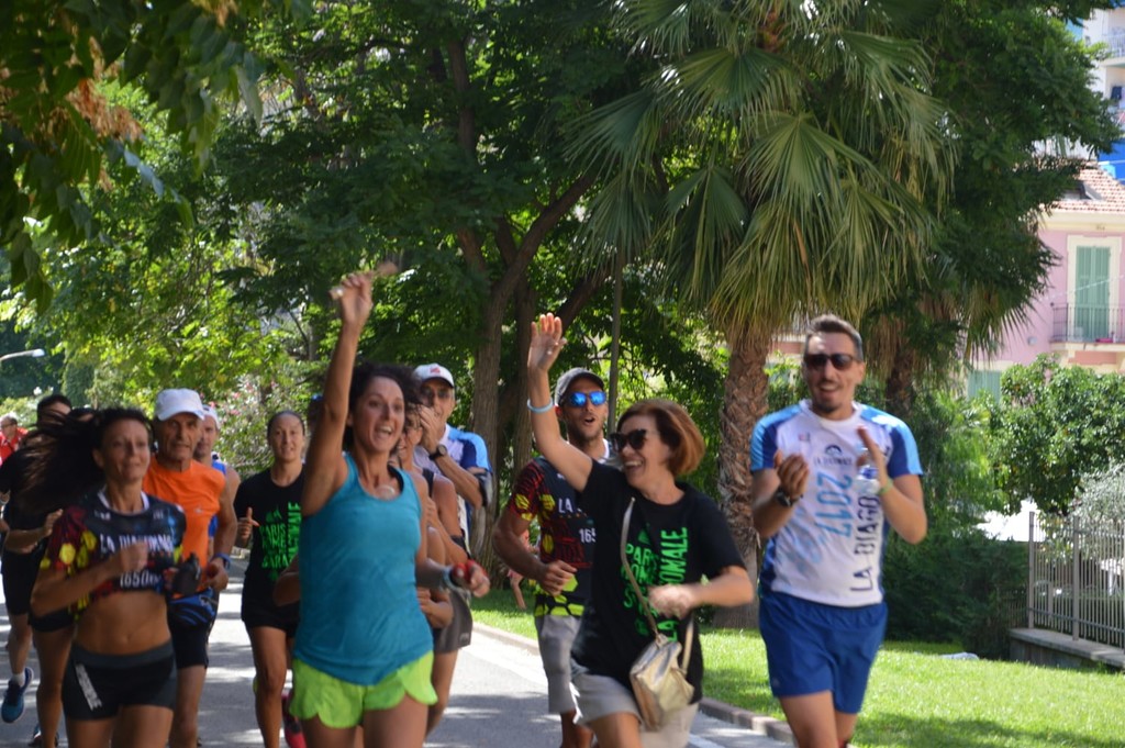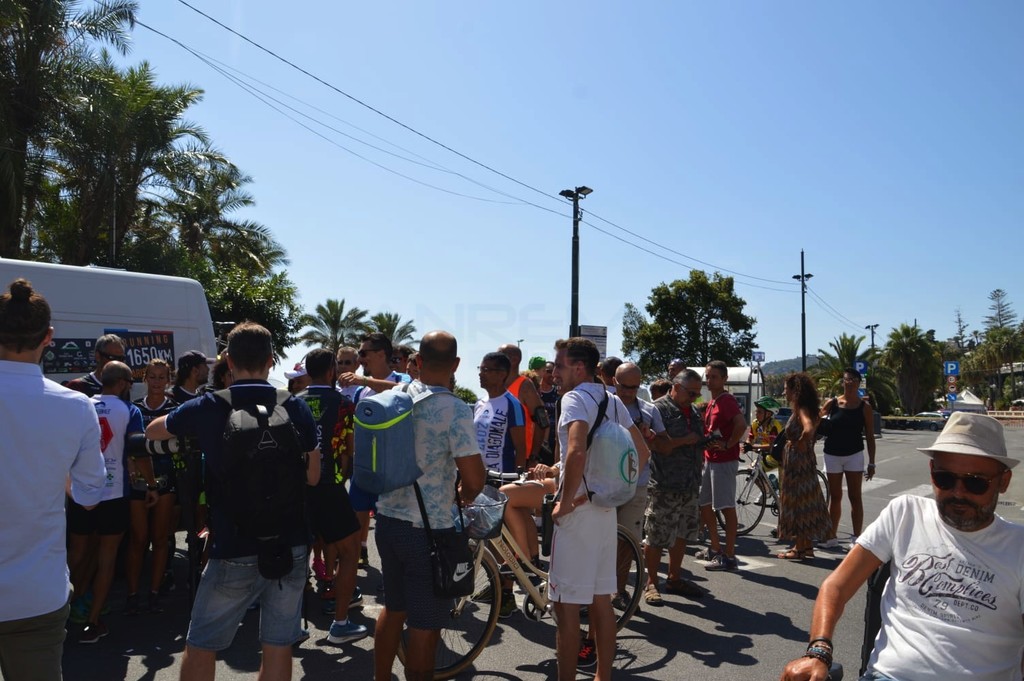 Il passaggio del gruppo sul lungomare di Arma dove ad attenderli c'erano gli stabilimenti balneari