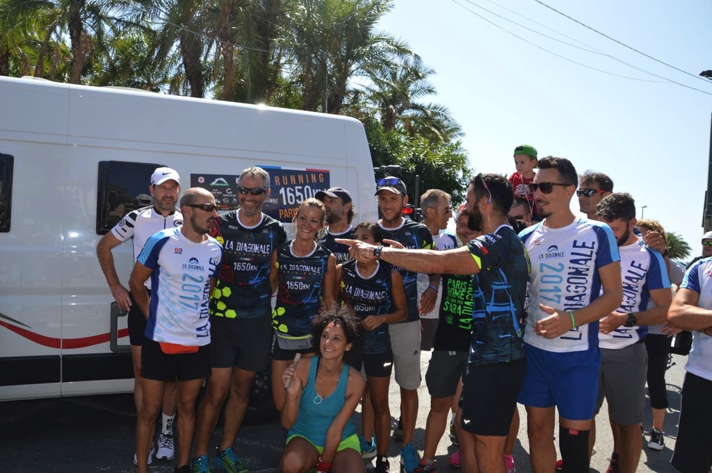 Era il momento più atteso da quando sono partiti da Parigi. Venerdì nella capitale francese è iniziata l'avventura de La Diagonale, 11 temerari che stanno portando avanti una staffetta verso Roma con l'intento di raccogliere fondi a favore di Sara Lucà, 29enne di Taggia colpita da un aneurisma cerebrale e ricoverata in Austria.