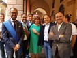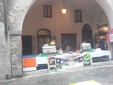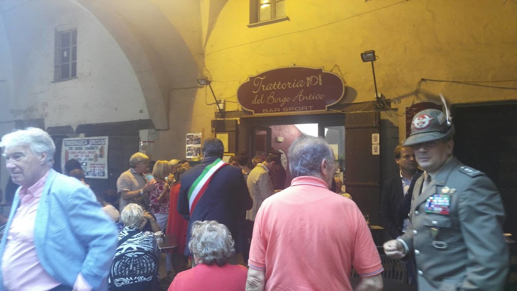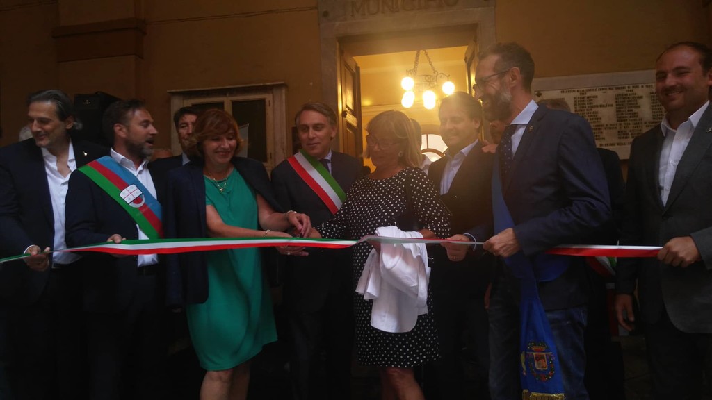 L'inaugurazione, vista la pioggia, si è svolta sotto i portici, davanti l'ingresso del palazzo comunale.