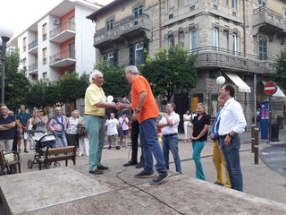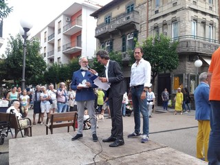 Sono la colonna portante del commercio di Diano Marina. Sono i 44 esercizi storici, con quaranta e più anni di attività continuativa (stessa famiglia e stesso ramo merceologico) alle spalle, cui domenica pomeriggio l’amministrazione comunale e l’associazione Vivi Diano Marina con noi hanno consegnato una targa di riconoscimento. Una cerimonia, svoltasi in corso Roma e presentata da Roberto Guidarini, che è stata molto partecipata e apprezzata, durante la quale è stata ripercorsa un po’ di storia della città e non sono mancati, oltre a tanti applausi, momenti di commozione. Commozione anche durante la consegna a Gianni Ferrari (milite con più anni di anzianità all’interno della sezione dianese della Croce Rossa Italiana) della Targa in memoria di Roberto Viale, prima edizione di un riconoscimento per l’impegno nel volontariato.