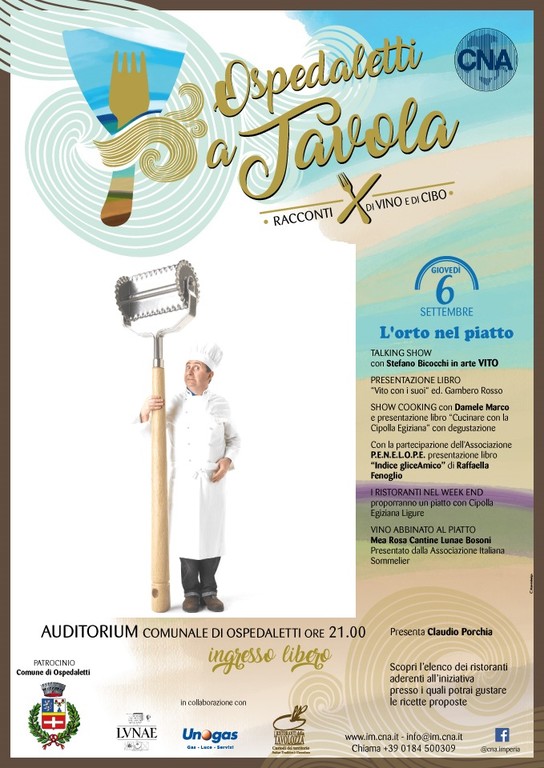 Torna questa sera per l’ultimo appuntamento in programma, 'Ospedaletti a Tavola', la fortunatissima rassegna enogastronomica che si tiene alle 21 presso l’Auditorium di Ospedaletti: tema portante della serata “l’orto nel piatto”.