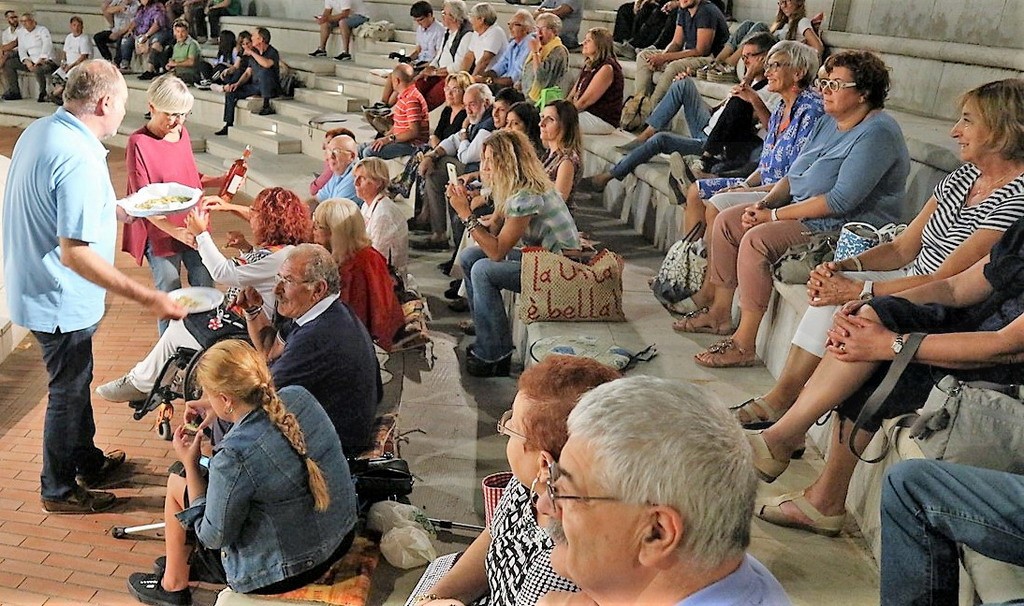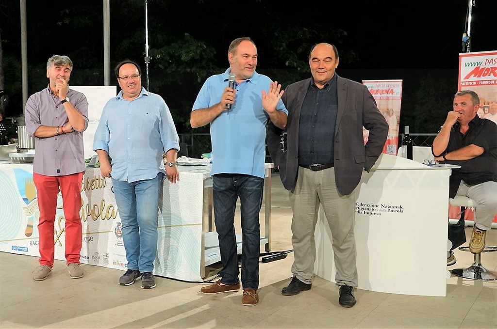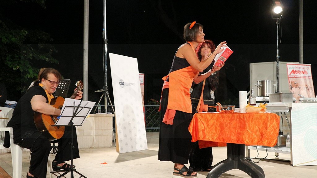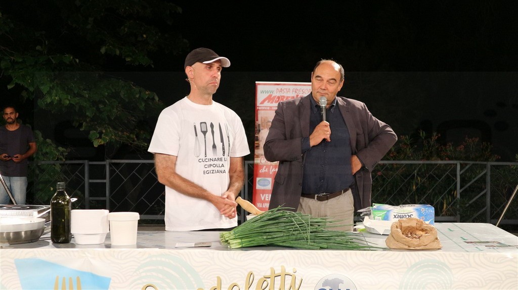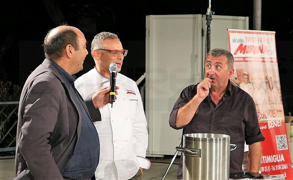Un pubblico ancora una volta numeroso ha seguito con grande attenzione e interesse l’incontro che ha avuto Stefano Bicocchi in arte Vito come assoluto protagonista. Insieme al giornalista Claudio Porchia, che ha condotto anche questo ultimo appuntamento della rassegna, l’attore chef emiliano ha accompagnato il pubblico a scoprire i segreti dell’orto nel piatto. Molto ricco il programma, condotto con ritmo veloce e senza pause, che ha garantito divertimento e cultura gastronomica, con la presenza di un agricoltore chef, Marco Damele, che ha preparato un pesto di Cipolla egiziana, molto apprezzato dal pubblico presente, applauditissimi gli interventi teatrali e musicali dell’Associazione PE.NE.LO.PE, che hanno accompagnato gli show cooking e la presentazione del libro “Indice GliceAmico” di Raffaella Fenoglio. La degustazione finale dei ravioli con ripieno di Cipolla egiziana prodotti dall’azienda Pasta Morena di Ventimiglia e recentemente inseriti nel catalogo dei prodotti offerto alla clientela, ha concluso l’incontro che ha permesso di scoprire le eccellenze enogastronomiche del territorio, con una formula innovativa che ha coinvolto ristoratori e produttori.