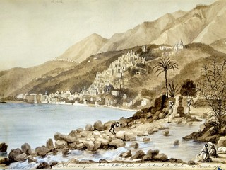 "Molte sono le immagini acquerellate o dipinte illuminate da un personale cono di luce prestate da collezionisti locali esposte nel buio di una delle sale di Santa Tecla ed esposte per la prima volta all’ammirazione del pubblico che è rimasto particolarmente colpito da un prezioso acquarello proveniente dal lontano dicembre del 1871 che fa parte di un raro album di vedute di Anna de L’Epinois Millon de Montherlant (1804-1898): una famosa viaggiatrice e pittrice che documentò con uno stile inconfondibile gli aspetti dei luoghi visitati". A Sanremo si stabilì due volte nel 1853 e nel 1871 per ritrarne 'la fascia di lussureggianti giardini con palme e grandi alberi, popolata da donne col carico sulla testa e contadini col mulo'".