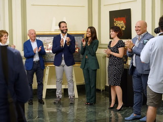 Hanno tagliato il nastro con l’artista e la curatrice Isabella Finos Calissi, il consigliere del Casinò, Olmo Romeo, Presidente di Federgioco, l’Assessore regionale, Gianni Berrino, l’Assessore alla Cultura di Sanremo, Eugenio Nocita, il consigliere comunale Giovanna Negro.