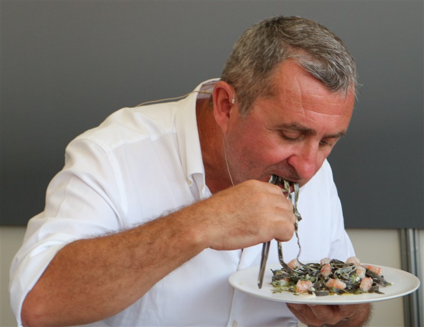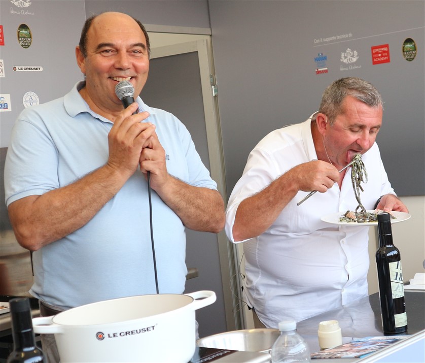 Stefano Bicocchi, in arte Vito forte dell'esperienza con i “Velisti per caso” di Syusy Blady e Patrizio Roversi e animato dalla grande passione per la cucina con un ingrediente speciale, la comicità, ha seguito con attenzione lo show cooking del giovane cuoco piemontese, che dopo aver lavorato alcuni anni con gli stellati Cracco e Palluda, ha preso le redini, o meglio i mestoli, del ristorante che si trova di fronte al mare vicino alla frontiera francese.