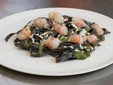 ed un primo piatto delizioso e di grande interesse: le Linguine di riso venere, latte di pinoli e gamberi rossi di Sanremo.