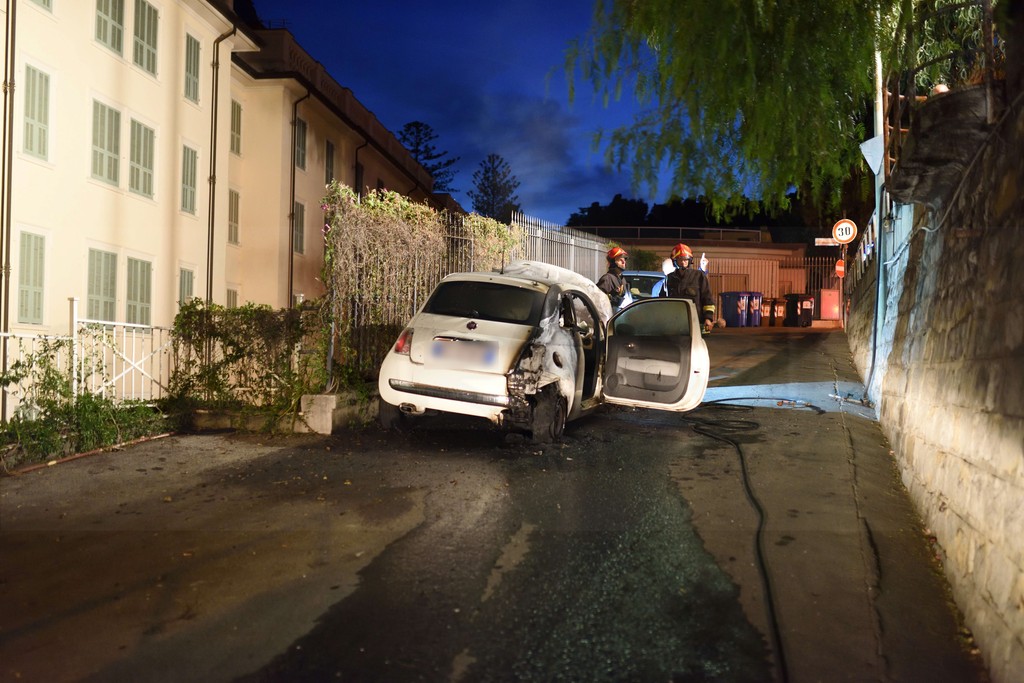 Un incendio, sulle cui cause dovranno indagare i Vigili del Fuoco e le forze dell'ordine, ha distrutto questa sera poco dopo le 20, una Fiat 500 parcheggiata in via Asquasciati a Sanremo.