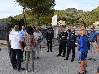 Al termine della riunione in prefettura il Sottosegretario Molteni si è recato a Ventimiglia per fa visita alla struttura persso il Parco Roya. Ad accompagnarlo il Prefetto Silvana Tizzano, il Questore Cesare Capocasa, il vicepresidente della Regione Sonia Viale, il segretario della Lega di Ventimiglia Andrea Spinosi, il vicesindaco di Ventimiglia Silvia Sciandra oltre a rappresentanti di Carabinieri, Polizia di Stato e Guardia di Finanza cara poli e finanza.