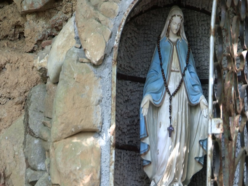 La madonnina fu posta nella zona delle così dette 'Vasche delle Acque Nere', nel 1997, da un gruppo di cacciatori al di sotto di uno scoglio roccioso sporgente che piu' di una volta fu riparo di cacciatori e fungaioli sorpresi dalle intemperie. Così per ringraziamento in quell'anno alcuni cacciatori decisero di redigere questa piccola edicola con all'interno la statua di una madonnina.