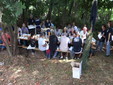 Una sessantina di fedeli, giovani e meno giovani, si sono messi in cammino intorno alle 10 per raggiungere la Madonnina all'interno del bosco, a circa mezz'ora di cammino, sotto l'occhio attento della protezione civile di Sanremo che ha voluto presenziare alla manifestazione. Arrivati sul luogo è stato allestito un piccolo altare per la celebrazione e i fedeli si son disposti su rocce, foglie e tronchi per questa particolare celebrazione accompagnata dai rumori del bosco.
